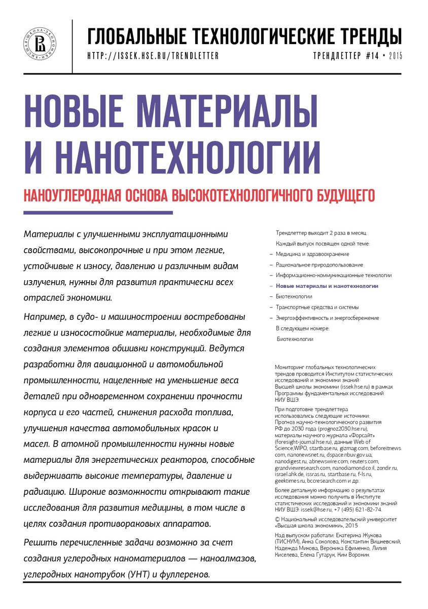 НОВЫЕ МАТЕРИАЛЫ И ТЕХНОЛОГИИ - НАНОАЛМАЗЫ (по данным ВШЭ).