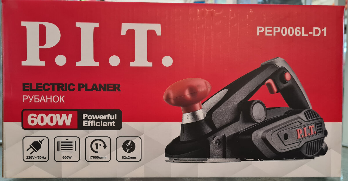 Рубанок PIT PEP006L-D1. (600Вт.) Добрый день, уважаемые читатели и подписчики моего канала! А сейчас немного о компании P.I.T. В народе все говорят Пит (Прогрессивные инновационные технологии). Компания довольно долго, более 20 лет выпускает и продает свою продукцию. Электрический, бензиновый, аккумуляторный инструмент, садовая техника, а также за последний год вышло на рынок множество качественной оснастки и расходных материалов. Хорошо продается в Азии, России. Рубанок применяется для обработки заготовок из дерева: строгания и выравнивания поверхностей, выборки четвертей и снятия фасок. Итак, начинаем обзор рубанка. Рубанок упакован в ярко-красную коробку из плотного картона, на самой упаковке есть основная информация о мощности, оборотах и ширине строгания рабочей поверхности. Сама коробка запечатана с завода изготовителя такой бумажной пломбой. Некоторые покупатели просят товар с целой пломбой. Открываем коробку и видим что документы, планка (линейка) и сам рубанок упакован в пакет