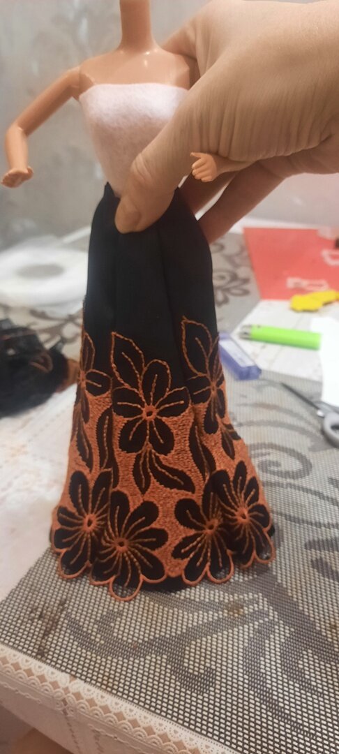 Здравствуйте. Статьи по проекту все множатся и занимать место перечислением предыдущих не хочется, поэтому в начале статьи я буду давать ссылку на подборку, где они все собраны с самого начала проекта. Остановилось мое повествование на том, что я добралась до пошива платья. Даже сшила юбку. С довольно спорным узором по подолу. Я планировала расшить это безобразие бисером и сформировать лепестки цветов в виде языков пламени. Серединку каждого должен был украшать объемный цветочек, отлитый из смолы. В таких же цветах, как крылья. Я даже слепила его из моделайта для снятия молда. И даже покалякала в пайнте, пытаясь изобразить, что должно получиться. Все эти художества предполагалось вышивать бусинками, бисером и стеклярусом. От объема работы слегка плохело становилось не по себе. Но вдруг этап пошива платья для Драконессы неожиданно совершил кульбит и вернулся к исходной точке. Еще в самом начале моего пути в кукольном мире преображений мне посчастливилось познакомиться с замечательным ма