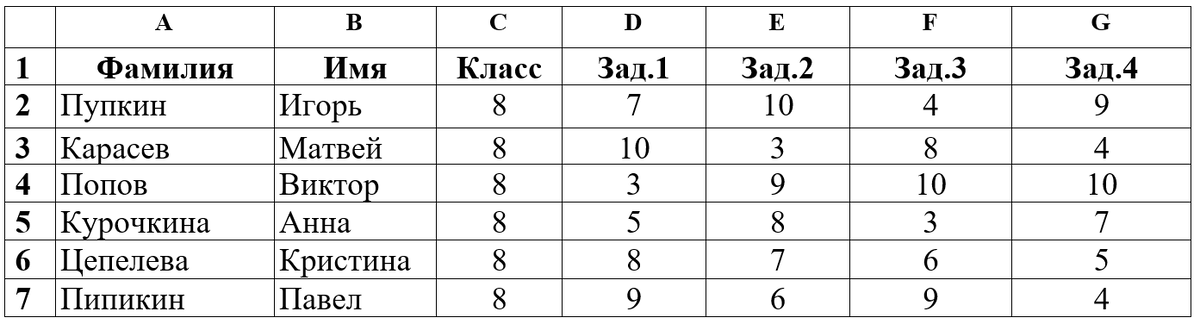 После проведения олимпиады жюри внесло результаты участников олимпиады в электронную таблицу:
