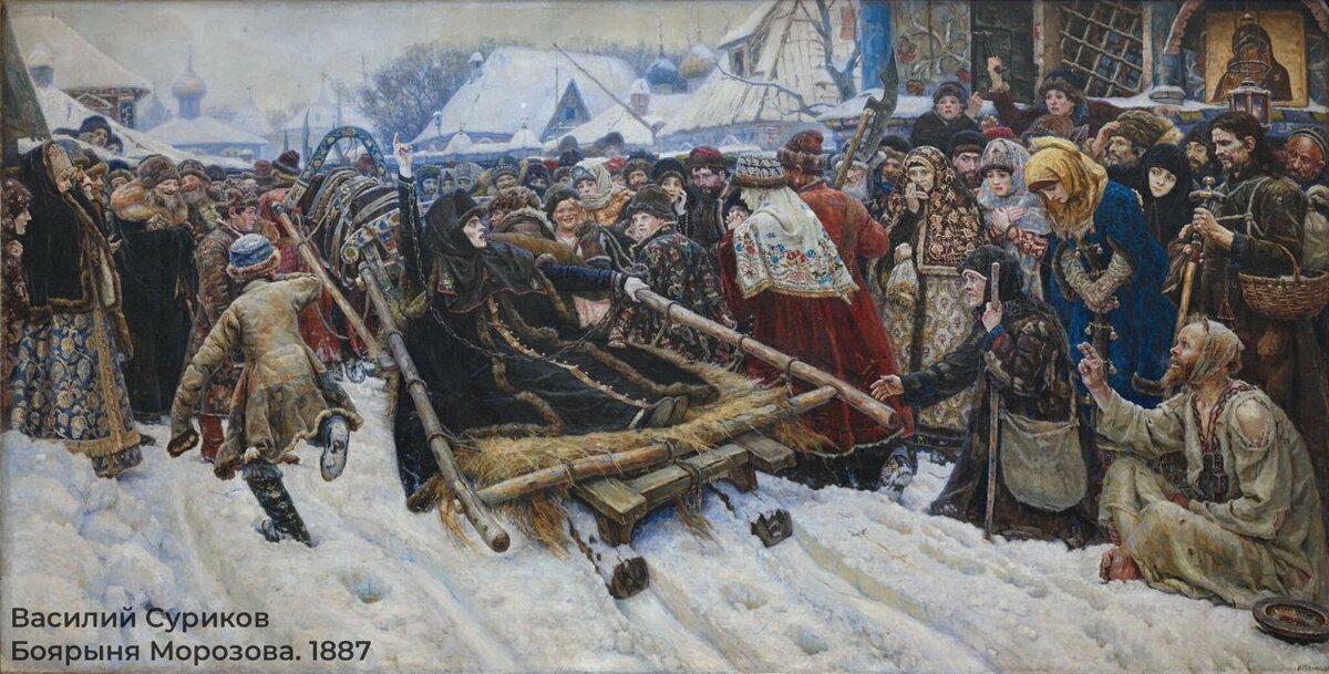24 января 1848 года родился художник Василий Суриков. «Боярыня Морозова» - самое масштабное произведение Сурикова: три на шесть метров. В Третьяковской галерее оно занимает целую стену.Над ним Суриков работает очень долго. Прежде чем приступить к самому полотну, он делает тридцать пять эскизов, добиваясь точности во всем. «Если б я ад писал, то и сам бы в огне сидел и в огне позировать заставлял», - говорит он. Художник часами следит за богомольцами, которые идут в монастырь, ходит на московские базары, в лавки - выслеживает, смотрит на лица, ищет типажи для своей картины. Боярыню Морозову Суриков изображает в самый драматический момент ее жизни: одну из предводительниц церковного раскола везут в ссылку. Демонстрируя свое бесстрашие и непреклонность, она поднимает руку со старообрядческим двуперстием.Неистовый пыл боярыни, с её вздёрнутой рукой, с её горящими глазами, которые смотрят в никуда, на картине контрастирует с ясным морозным утром. Суриков не только стараетс