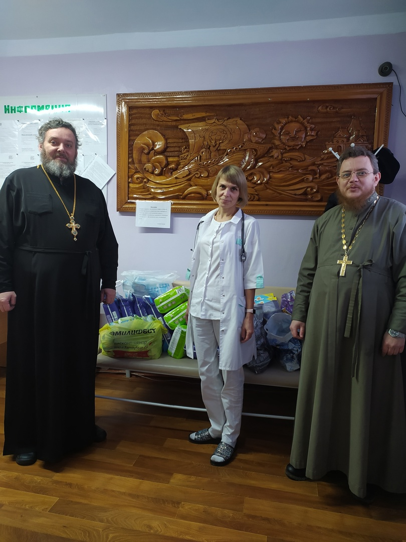 Благочинный Осинниковского округа, настоятель храма Святой Троицы г. Осинники протоиерей Василий Грушицкий и настоятель храма в честь иконы Божией Матери «Всех скорбящих Радость» пос. Тайжина иерей Роман Алексеевский передали заведующей педиатрическим отделением Осинниковской городской больницы Оксане Юрьевне Моторной подарки для детей, находящихся на лечении в стационаре детского отделения.