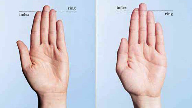 Для того, чтобы определить характер другого человека, вовсе не обязательно проводить с ним много времени. Также нет необходимости осваивать премудрости астрологии, хиромантии, нумерологии. Можно использовать вполне научный метод и приглядеться к длине пальцев. Английский антрополог, профессор университета Суонси Джон Мэннинг в результате многочисленных и продолжительных исследований сумел вывести новый параметр — пальцевый индекс. В основу методики легло сравнение размера указательного пальца (2D) и безымянного (4D). Так, согласно статистическим данным, у большинства мужчин на планете пальцевый индекс равен 0,88 — 1,05, а указательный палец короче безымянного. У женщин всё наоборот, либо же пальцы и вовсе равны. Женский пальцевый индекс варьируется от 0,91 — 1,017. Соответственно, для мужчин характерен низкий показатель, а для женщин — высокий. . Мэннинг считает, что на пальцевый индекс влияет наличие тестостерона (мужского гормона) в организме. Иными словами, если у мужчины указател