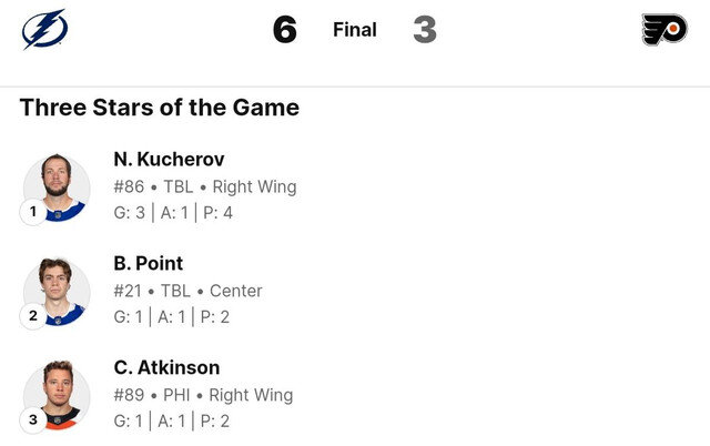Никита Кучеров снова сделал сильный ход в противостоянии с Нэтаном Маккинноном за звание самого результативного хоккеиста нынешнего сезона НХЛ. Российская суперзвезда «Тампы» буквально уничтожила «Филадельфию», набрав 4 очка в победном для «Лайтнинг» матче (6:3). Куч оформил пятый хет-трик в НХЛовской карьере, а также пополнил свой бомбардирский баланс прекрасной голевой передачей, став первой звездой прошедшей встречи. Заокеанские поклонники хоккея, оставлявшие комментарии в социальной сети X (Twitter), не перестают восхищаться результативностью 30-летнего российского нападающего. @Wanderfulworld1:– Уму непостижимо, кто-то до сих пор может считать, что Кучеров не является одним из двух главных кандидатов на «Харт Трофи». Без него «Тампа» шла бы на последнем месте в своем дивизионе. @amput007:– Куч вернулся на первое место бомбардирской гонки – а значит все снова обрело привычный порядок вещей. @CourtKramer39:– Такое ощущение, что Кучеров – единственный игрок «Тампы», который что-то по