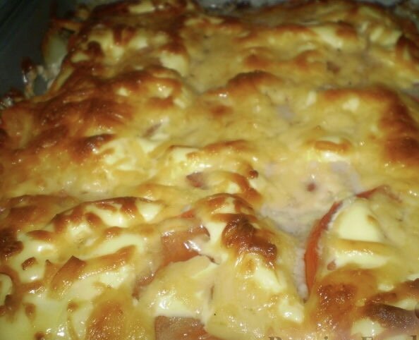 Очень простая в приготовлении, но очень вкусная запеканка из картофеля и мясного фарша, с помидорами и сыром. На 4 порции вам понадобится: 500 г фарша мясного 800 г картофеля 1 луковица 2 помидора 100 г сыра твёрдого 2 яйца 4 ст.л. майонеза 4 ст.л. сметаны соль, специи 2 ст.л. масла растительного. Способ приготовления: Картофель очистить и отварить в подсоленной воде до мягкости, слить воду и размять картофель в пюре. Фарш смешать с нарезанным мелкими кубиками луком, посолить и поперчить по вкусу. Помидоры нарезать кружочками. Сыр натереть на терке. Яйца взбить с майонезом и сметаной, добавить соль и специи по вкусу. В форме для запекания смазать дно и стенки маслом. Выложить половину картофельного пюре, разровнять. Сверху выложить фарш, разровнять. Покрыть оставшимся пюре. Полить яично-майонезной смесью. Посыпать тертым сыром. Украсить кружочками помидоров. Запекать в духовке при 180°C около 30 минут, пока не образуется золотистая корочка. Спасибо за внимание 🤩