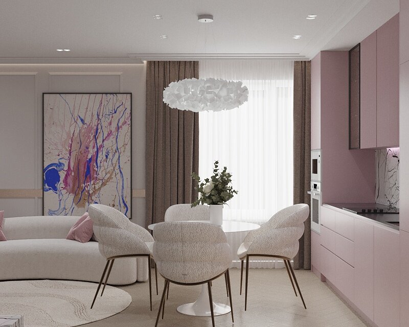В 18 лет перед тобой открыты все дороги, поэтому в интерьере для нашей юной клиентки нам хотелось смешать причудливый микс стилей. Отталкиваясь от вечной классики ар-деко, мы решили немного похулиганить. Вдохновением послужил барбикор, тем более будущая хозяйка стильная, яркая и уверенная в себе. Так в интерьере появились розовые акценты.