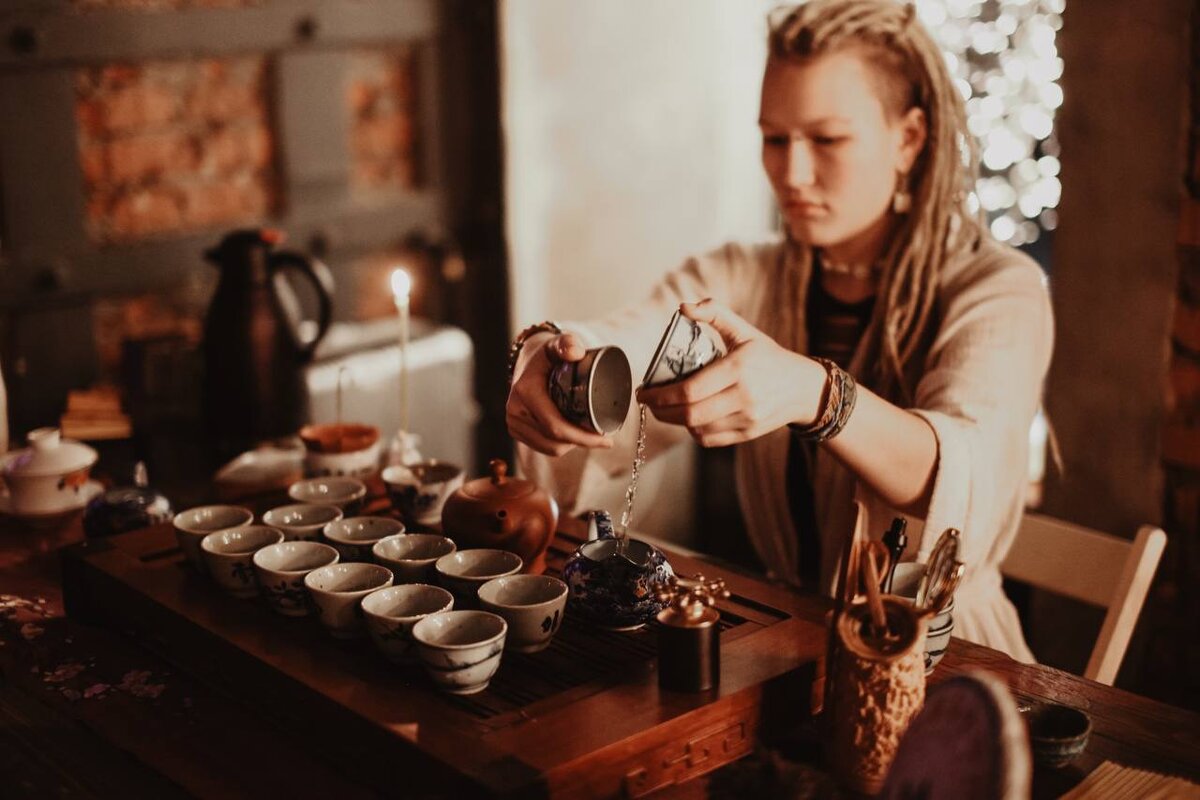 Сейчас у меня свой клуб и выезжаю редко. Вот например выпускной на курсах у Гоши Романова. В принципе, я не пострадал тогда. Взял двух юных помощниц, контролировал процесс и иногда заваривал сам, кайфовал. Так и надо. Так что если вам нужно наполнить смыслом ваше событие - пишите, может договоримся и привезу вам кусочек магии чайного клуба Артефакт ;)