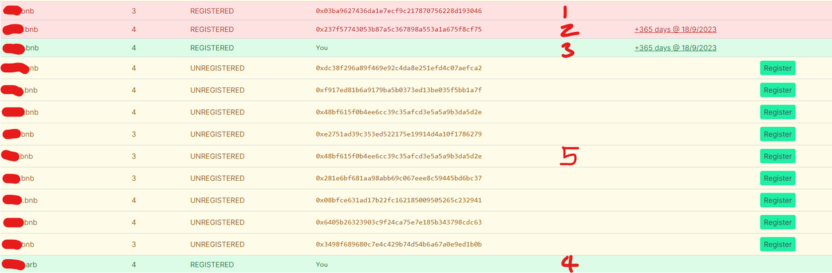 В одном из своих недавних видео я рассказывал про предложение в DAO Space ID, принятие которого позволит снизить стоимость продления сроков регистрации доменов до 5$. Видео тут: https://dzen.ru/video/watch/65aa5d355d43777ffc55f577 По этому предложению поступает довольно много вопросов, поэтому я собрал их в некое FAQ: Пример первый: Пользователь зашёл на https://id34.stevenlei.com/, скопировал в поле свой адрес кошелька и получил такую таблицу: Что это всё обозначает? Ответ: Пример второй: Я зарегистрировал домен из 3 или 4 символов, затем продлил его и отправил на свой второй кошелёк. Теперь при проверке на https://id34.stevenlei.com/ показывает, что компенсации не будет ни на первом адресе ни на втором. Это же не справедливо! Ответ: Перенесите этот домен из кошелька B обратно в кошелек A, тогда кошелек A будет иметь право на компенсацию за продление. Пример третий: У меня был домен 1234 и я его продал. Новый владелец его не продлевал, у этого домена истёк grace peroid и premium perio