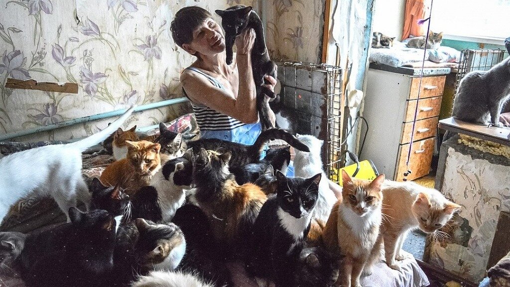 Некоторые жители многоквартирных домов заводят у себя чрезмерное количество кошек – по 10–15, а то и более. Чаще всего так поступают пожилые одинокие люди, либо так называемые "кошатники".