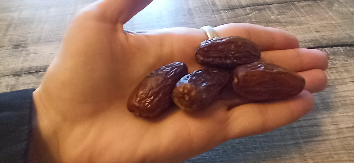 Ребята, купила в Магните финики мои любимые) Да по невнимательности не разглядела сразу, думала замёрзли, какие-то они сильно твёрдые, похоже скукоженные временем)) А здесь уже в разгрызанном состоянии 🤪 И, думаете выбросила, Неееет, все разгрызла и съела, вот так😋