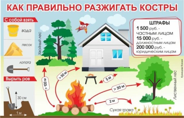 Важно соблюдать правила пожарной безопасности при разжигании и содержании костра. Никогда не оставляйте костер без присмотра, всегда имейте под рукой воду для тушения пламени. Также убедитесь, что разводение костра разрешено на территории, на которой вы находитесь.