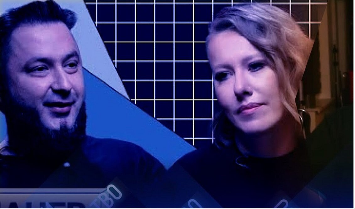 В слабоосвещённом пространстве сидят Ксения Собчак и для многих неожиданный патриот России Аким Апачев (в рождении — Гасанов). За их спинами мощные металлические перемычки, между ними уходит вдаль труба, с расходящимися световыми лучами. Первое впечатление, что труба ведёт в другое измерение, портал между мирами. Местечко подобрано явно с целью, но пока непонятной.