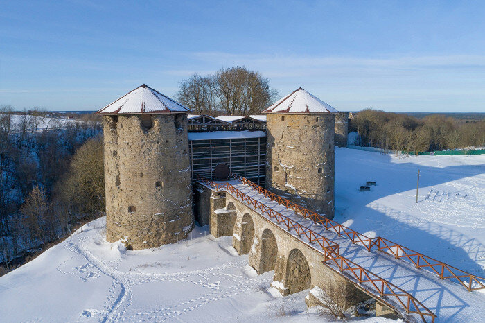 Как и Копорье, Изборская крепость сохранилась до наших дней без особых переделок. Город Изборск был основан в конце 7 века на Труворовом городище. В то время его центром была деревянная крепость, а в 13 веке на ее месте появилась каменная.