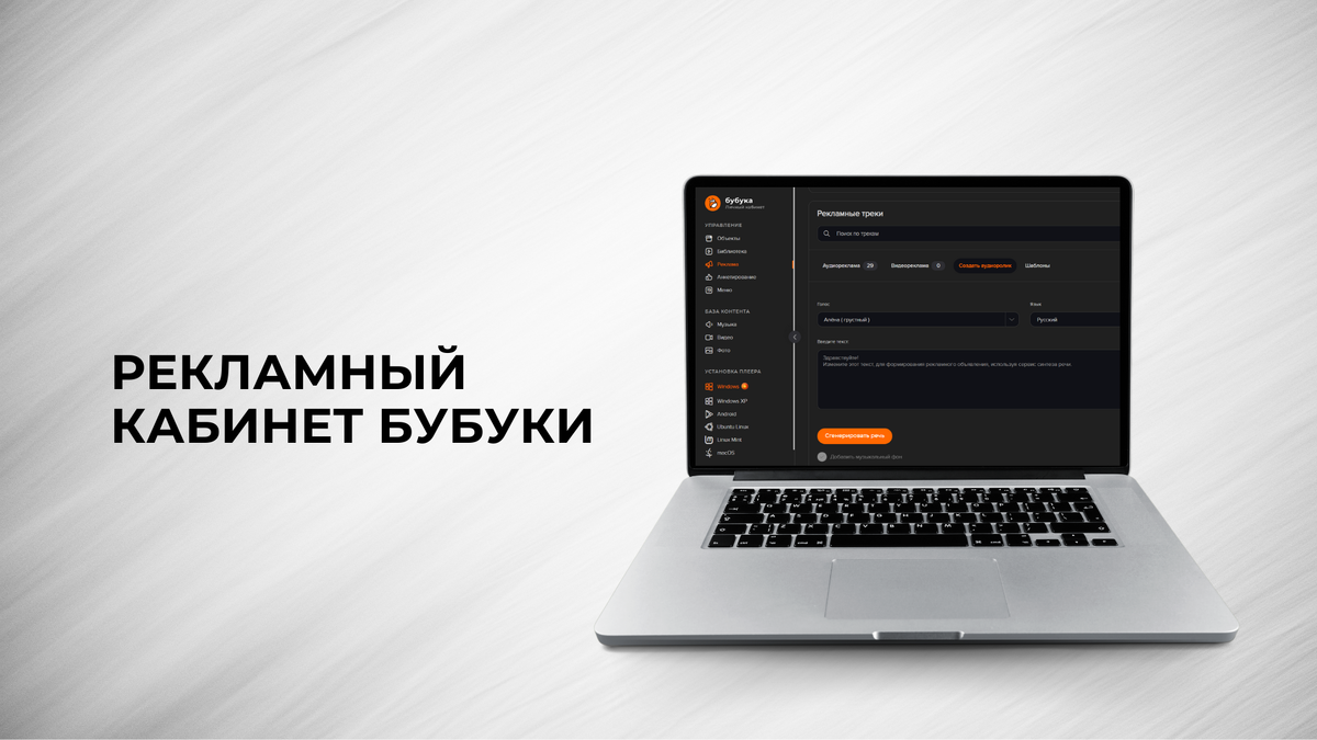 Используя рекламный кабинет БУБУКИ, вы зарабатываете на прокате роликов сторонних организаций. Все деньги за размещение рекламных объявлений - только ваши. Никакой комиссии и процент вы БУБУКЕ не платите. Аудиорекл