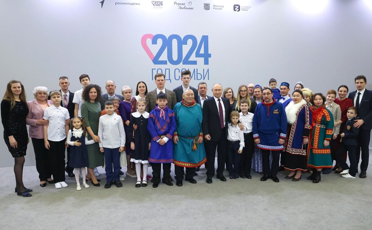 23 января в Москве на площадке Международной выставки-форума «Россия» состоялась встреча Президента Владимира Путина с российскими семьями. Торжественная церемония старта Года семьи с участием Президента России состоялась 23 января в рамках форума «Родные-Любимые», который проходил в Москве. Участниками специальной программы форума стали более 1000 человек, среди которых Гунины из Нижегородской области, Панковы из Севастополя, Путинцевы из Новосибирской области, Скарницкие из Белгородской области, Шевченко из Санкт-Петербурга и Шустер из Оренбургской области. в том числе семья музыкантов Ахмеровы из Республики Башкортостан и Дьяченко из Луганской Народной Республики, династия педагогов Каретниковых из Саратовской области, владельцы семейного бизнеса по производству сладостей — Чернобельские-Горбачевы из Алексина Тульской области. Все они участвуют в конкурсе «Это у нас семейное» президентской платформы «Россия — страна возможностей». Владимир Путин положительно оценил идею конкурса и п