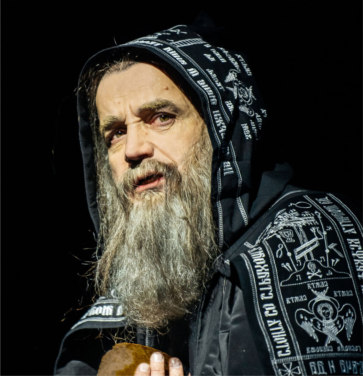На сцене появлялись иногда и другие старцы, одного из них играл Леонид Якубович. После «Поле чудес», сложновато воспринимать в нем монаха, тем более он был в обручальном кольце, а грим не очень убедительный, но в целом учитывая, что Якубович не актер, ему пятерка.