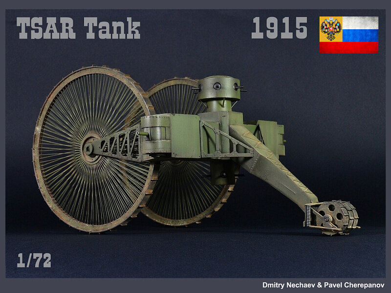 Работа под императорским "крылом" шла быстро, вскоре была изготовлена в металле и с конца весны 1915 года скрытно собиралась в лесу у станции Орудьево. 27 августа 1915 года были проведены первые ходовые испытания. Как и предполагалось применение больших колёс повлияло на проходимость всей машины, что она и подтвердила — ломала деревья, как будто это были зубочистки, а не деревья. Вот только задний каток, из-за своих малых размеров и неверного распределения веса машины увяз в мягком грунте. Большие колёса были неспособны вытащить его, даже несмотря на применение мощнейшей по тем временам двигательной установки, состоявшей из двух трофейных моторов «Майбах» по 240 л. с. каждый, снятых с подбитого немецкого дирижабля. Также при испытаниях выявили главную уязвимость машины — колес: при артиллерийском обстреле, особенно фугасными снарядами и шрапнелью, был велик шанс сломать спицы колеса, и из-за этого вывести его из строя. Все это привело к тому, что в сентябре проект был закрыт в результате заключения Высокой комиссии, однако Стечкин и Микулин все же занялись разработкой нового двигателя (АМБЕС) для машины. Впрочем, эта попытка не увенчалась успехом. Также не получилось сдвинуть Царь-танк с места и вытащить его из района испытаний.