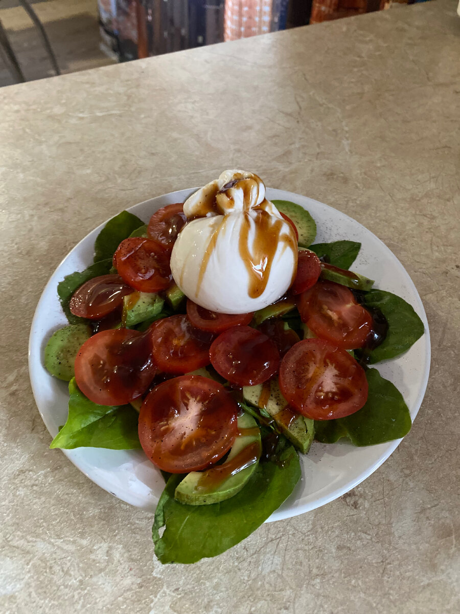 Ингредиенты : Сыр буррата любимая зелень 🥬 Приготовление : салат и овощи моем,нарезаем помидоры кружочком,выкладываем на листья салата ,солим ,перчим добавляем чеснок,выкладываем сверху сыр,сбрызгиваем соусом или бальзамином, разрезаем мешочек с сыром и наслаждаемся🥗😋Прияьного аппетита!