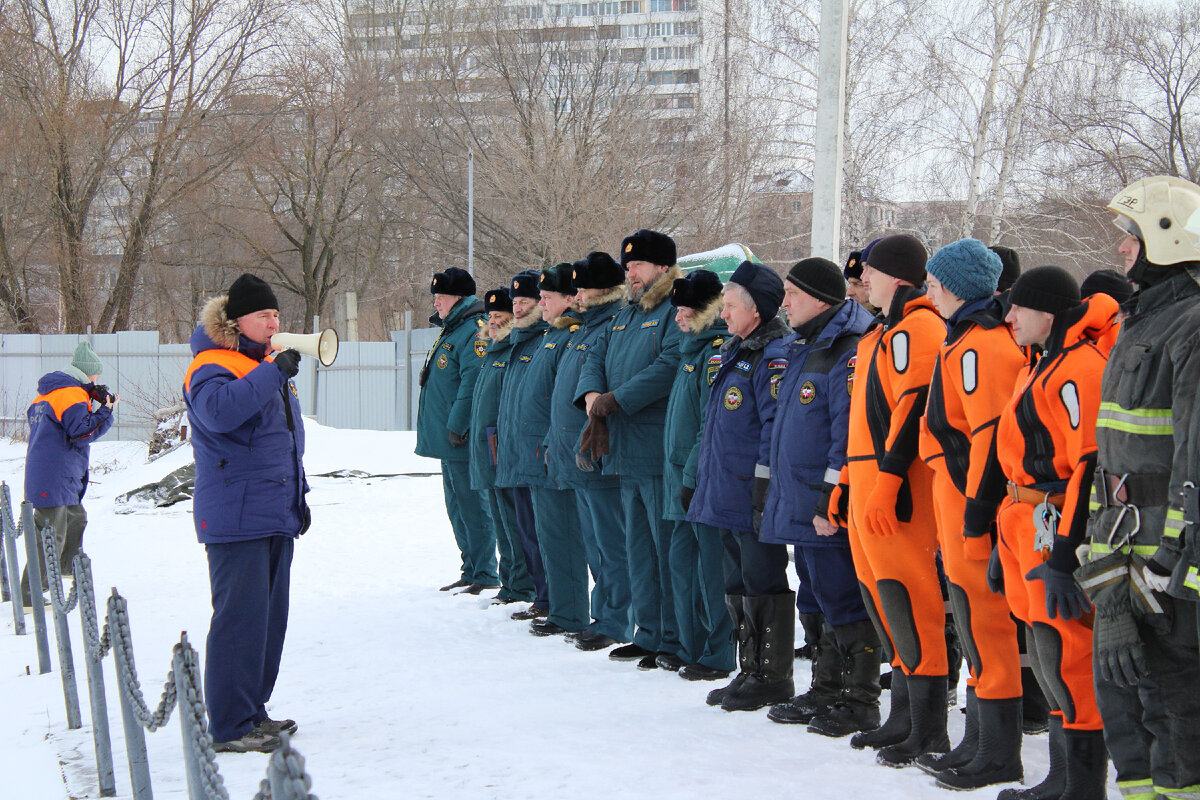 Также в учениях приняли участие городские и областные спасатели, специалисты пожарно-спасательной части. По легенде в ледяную полынью провалился рыбак. Статистка Юлия, которой пришлось несколько раз погрузиться в специальном нетонущем теплом костюме под лед, громко звала на помощь спасателей. Каждая из служб должна была быстро и правильно оказать помощь пострадавшему человеку и доставить девушку к берегу. Для этого использовали силы и средства, имеющиеся у каждого спасательного отряда. Спасатели поисково-спасательного отряда города Воронежа подошли к пролому на аэролодке и развернули УСЛП - устройство для спасения из ледяной полыньи. По виду оно напоминает надувной трап. На него из-подо льда вытаскивают пострадавшего, переносят на судно и достав