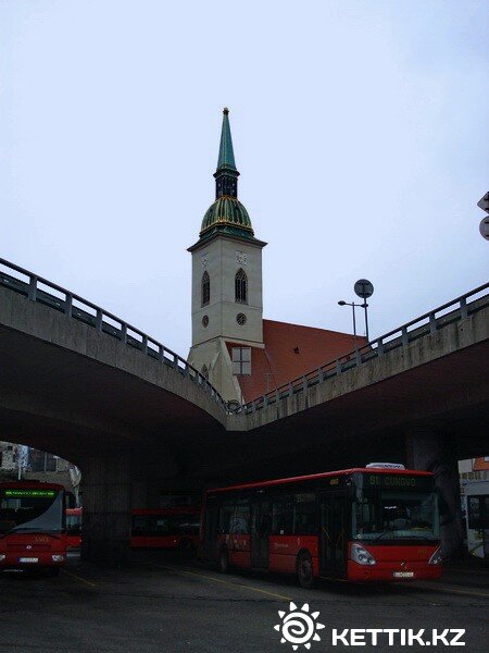 Подумав, что Алматы, в которой я родилась и выросла, а Саша прожил целых 7 недель — намного более "советиш", чем Братислава, и это на самом деле не так уж и страшно, — мы решили выделить один день своих каникул на осмотр еще одного города. Из Вены в Братиславу можно попасть двумя способами — на автобусе и по Дунаю. Дунай отпадал сразу — медленно, дорого и холодно. Автобусная поездка занимает ровно час и стоит 6 евро на человека в одну сторону.