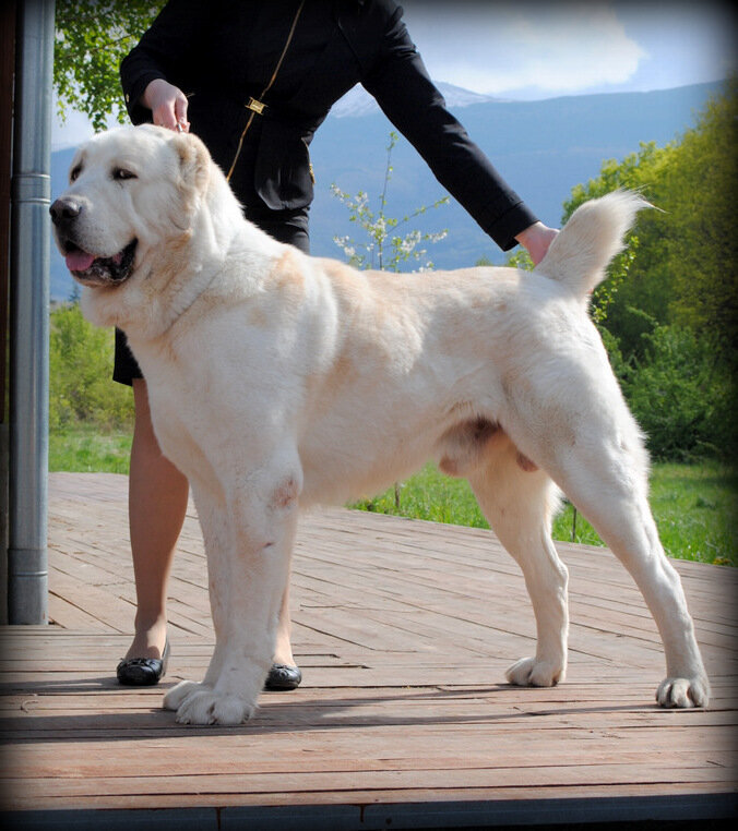Эта порода славится своими внушительными размерами и спокойным характером. Она выводилась для охраны стада, которое выпасалось в горах. Благодаря этому собака привыкла к экстремальным погодным условиям и хорошо переносит холод, но плохо себя чувствует в летнее время. Мастифы очень сдержаны, но при этом преданы хозяину и членам семьи.