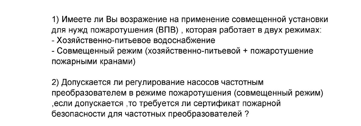 Совмещенная насосная установка на хозяйственно-питьевые и противопожарные нужды, частотный преобразователь в режиме пожарот ушения