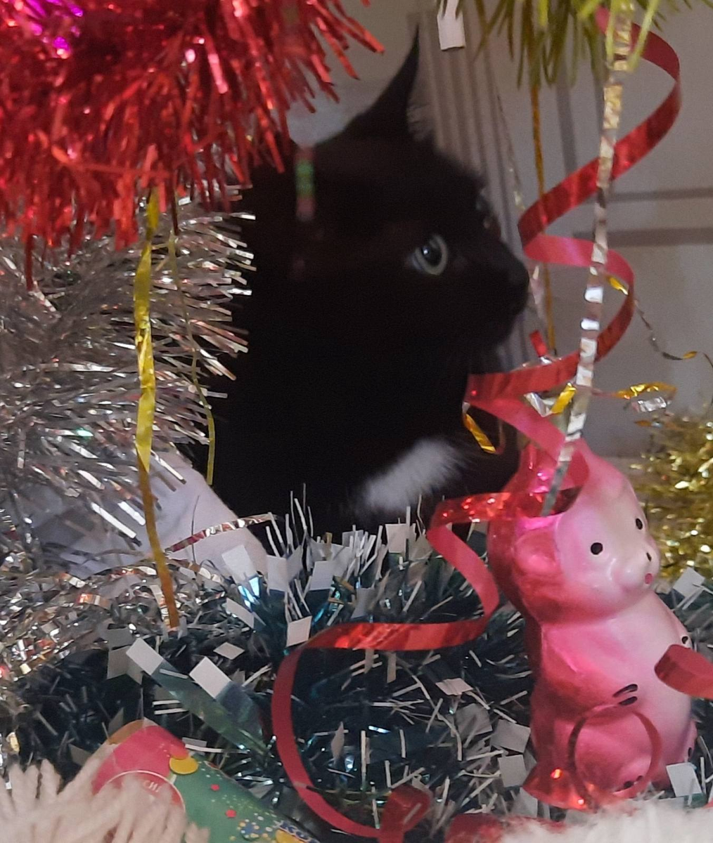 Любит наша Мурочка Под елочкой сидеть . Ей там уютно , хорошо На шарики смотреть . На ниточке качается Шарик голубой , Ах , как же Мурке хочется С ним поиграть порой. Ведь он такой красивенький , Всё дразнится , сверкает. А попадётся в лапки ей , Кисулька поиграет . Только вот хозяйка Играться не велит : -А вдруг завалишь ёлочку , Что будет ?-говорит . - Ну ладно , подожду я , Когда уснёт весь дом . Тогда уж наиграюсь, Чтоб не жалеть потом !