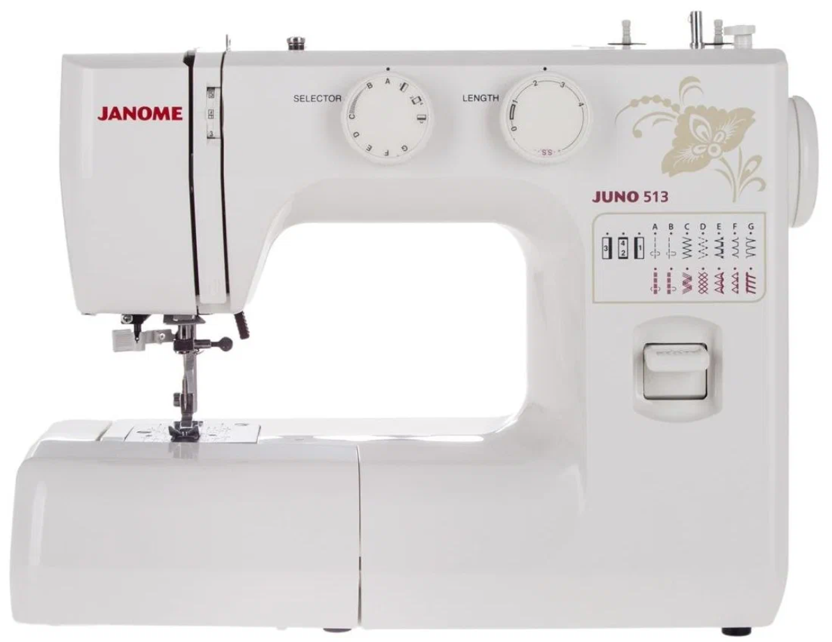 Среди бюджетных машинок на первое место я бы поставила Janome Juno 513. Самая просто электромеханическая машинка и в ней есть все необходимое для пошива белья.