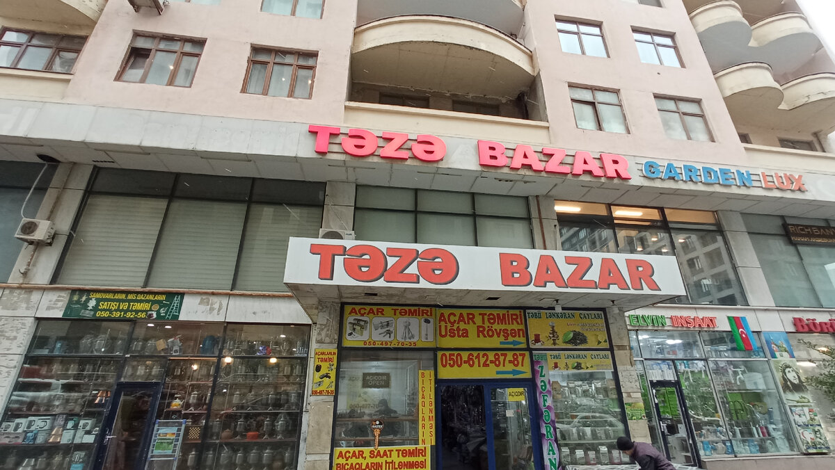 Я нисколько не скрываю, что большой любитель базаров/рынков, а восточных тем более. Именно здесь можно проникнуться самобытной культурой и понять душу простого горожанина. Поэтому, приехав в Баку, не откладывая в долгий ящик, я поскорее отправилась сразу после Ичире-Шехера на Тезе Базар. "Тезе" - означает "новый". Находится он недалеко от железнодорожного вокзала, это старый район и как-то тут не так ухожено и прекрасно как на центральных улицах. Но тем не менее и такой Баку надо увидеть. На подходе к самому базару много павильонов с разными товарами: овощи/фрукты, конфеты, бакалея, бытовая химия. Но я стремлюсь именно на базар и уже вижу огромную вывеску.