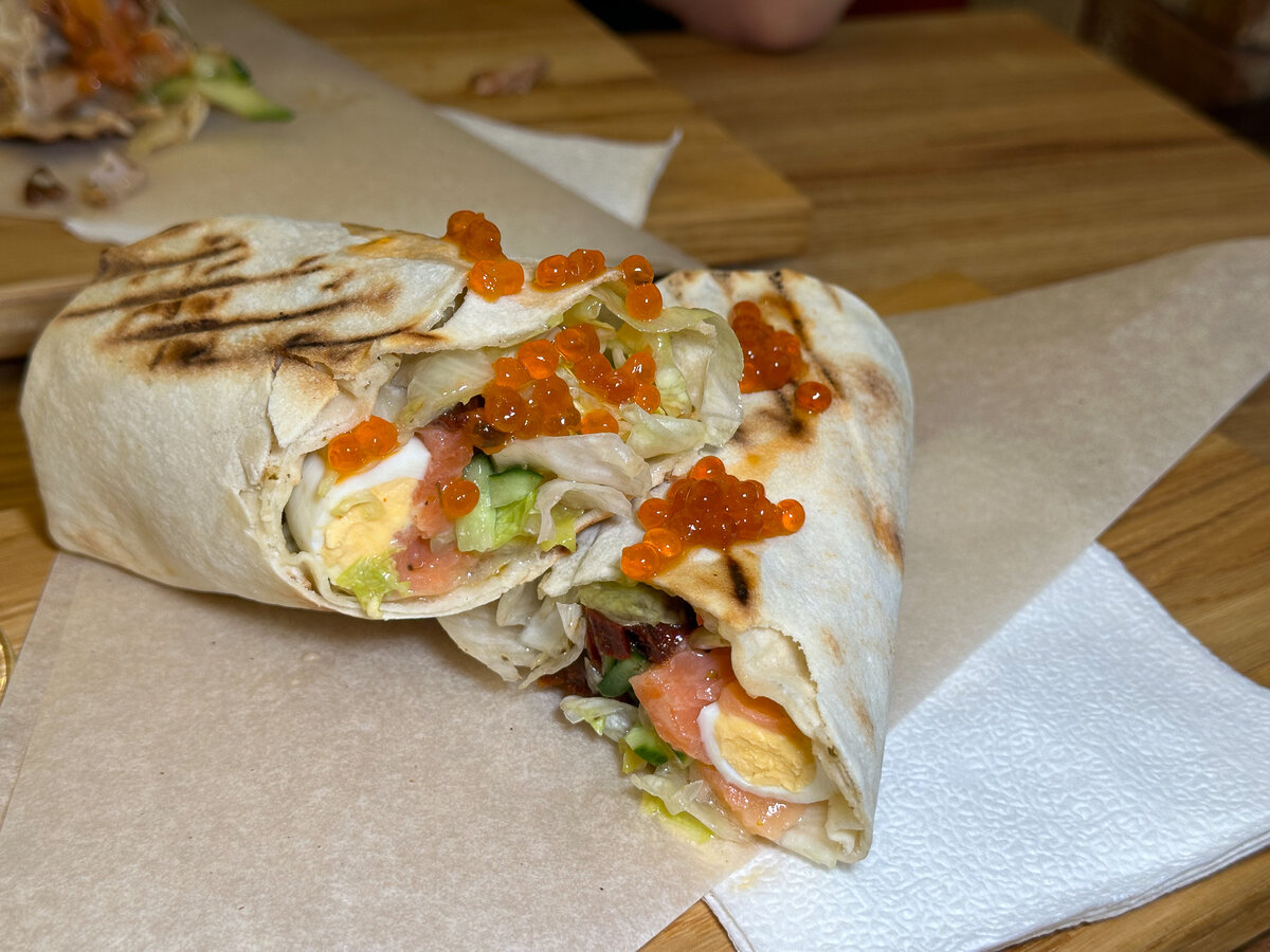 В новом кафе шаурму с красной икрой запивают бокалом просекко. Так и называется - «Шаурма и просекко»