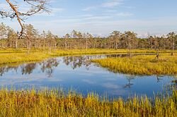 - Верховые лесные болота в основном представлены сосновыми деревьями.