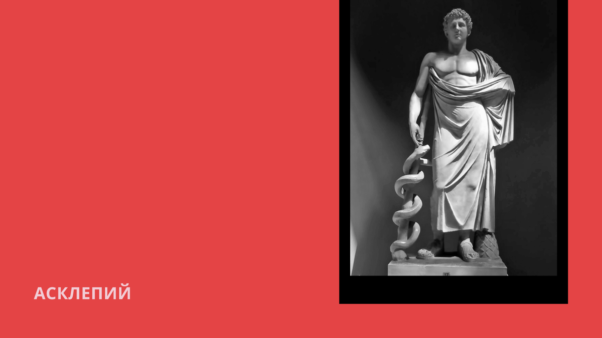 Добрый день! Сегодня хочу рассказать вам историю одного бога. По-гречески его звали Асклепий, а римляне предпочитали имя - Эскулап. Он бог медицины, врачевавший болезни и воскрешавший мертвых.