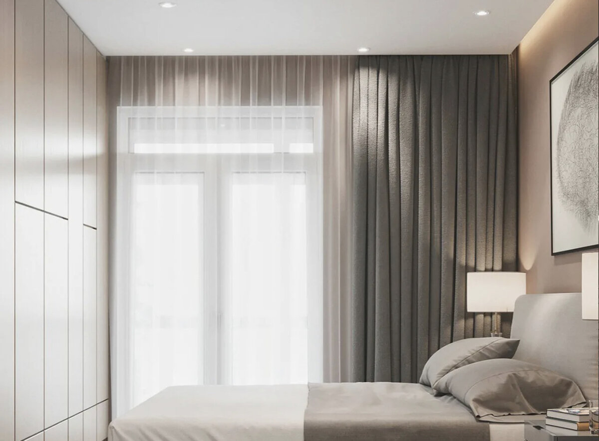 Помимо традиционного крепления карниза для штор, к стене или перекрытию, с натяжным потолком доступен ещё один оригинальный вариант — скрытая гардина. При таком расположении открываются новые дизайнерские возможности, а комната кажется выше, поскольку планка не видна. Для этого потребуется сделать натяжной потолок с нишей, в которой будет спрятан карниз. Таким образом крепление для гардин получится невидимым, так как перекладина утоплена в межпотолочном пространстве. В этой статье мы рассмотрим, как правильно выбрать карниз и рассчитать размеры конструкции. Также подробно разберем пять способов устройства скрытой ниши в натяжном потолке. Гардины вешают в несколько рядов: просто тюль, с портьерами или дополнительно декорируют ламбрекенами. В зависимости от количества штор нужно приобретать одно, двух, трёх или четырёхрядный карниз. Этот момент тоже лучше продумать заранее. При определении ширины учитывают размеры подоконника и положение батареи. Чтобы портьеры висели ровно, они не
