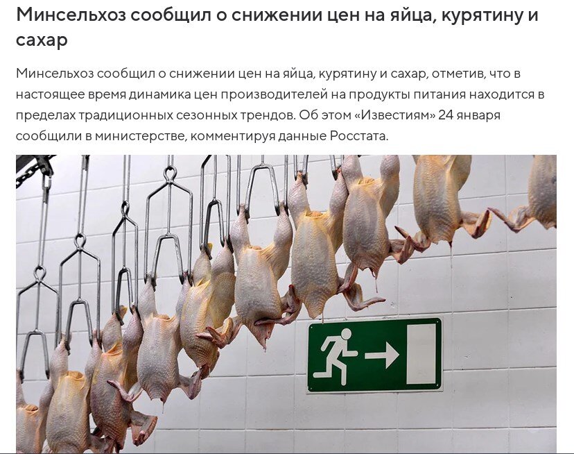 Вчера Минсельхоз выдал воистину ошеломляющую новость: ВСЁ ПОДЕШЕВЕЛО!!! Из конкретно ВСЁ: яйца, курятина и сахар. Ну в сахаром понятно. Он обычно в сезон заготовок резко дорожает. Сговариваются там производители - и давай цены накручивать, прикрываясь "ой, тяжко мне! А там дядя больше платит" и в таком духе. Сахар сейчас стоит в районе 64-66 р. у нас. К лету пробьет планку в 70р. А к середине, уверен, приблизится к 75-78р. Так сказать, сезонные колебания. Как же они "заколеба.ли". Чтоб они там заколебну.лись все разом! А вот с яйцами и курицей о-очень интересная ситуация. Вначале яйца упали (резко подешевели) на 0,2%, сейчас отчитались, что местами уже на 0,4%. Называют цифры в 89,66 и 78,21р. Но в словоблудии надо читать У ПРОИЗВОДИТЕЛЯ!!! В магазинах ценник остался прежним. Ну, по крайней мере по своим разницы не заметил! «По многим видам социально значимой продукции отпускные цены сейчас снижаются после повышения в предновогодний период. Так, стоимость куриных яиц падает четвертую н