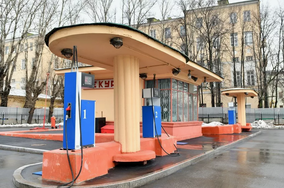Кремлёвская АЗС на Волхонке - одна из старейших сохранившихся бензоколонок Москвы. Является действующей и предназначена только для правительственных машин. Единственная бензоколонка в пределах Бульварного кольца и единственный реализованный элемент Дворца Советов. Одно из сохранившихся зданий советского ар-деко. АЗС, по одной из версий, построена по типовому проекту знаменитого архитектора Алексея Душкина, автора сталинской высотки у Красных ворот, «Детского мира» на Лубянке, станции метро «Кропоткинская». В настоящее время бензоколонка имеет статус вновь выявленного памятника архитектуры. Заправка построена в 1938 году, расположена на улице Волхонка и должна была стать частью архитектурного ансамбля хорошо известного Дворца Советов, которому не суждено было появится. Огромный комплекс Дворца Советов хотели построить на месте взорванного в 1931 году храма, но в конечном счете здесь открыли бассейн, и АЗС стала единственным напоминанием о грандиозных планах. АЗС служила для заправки с