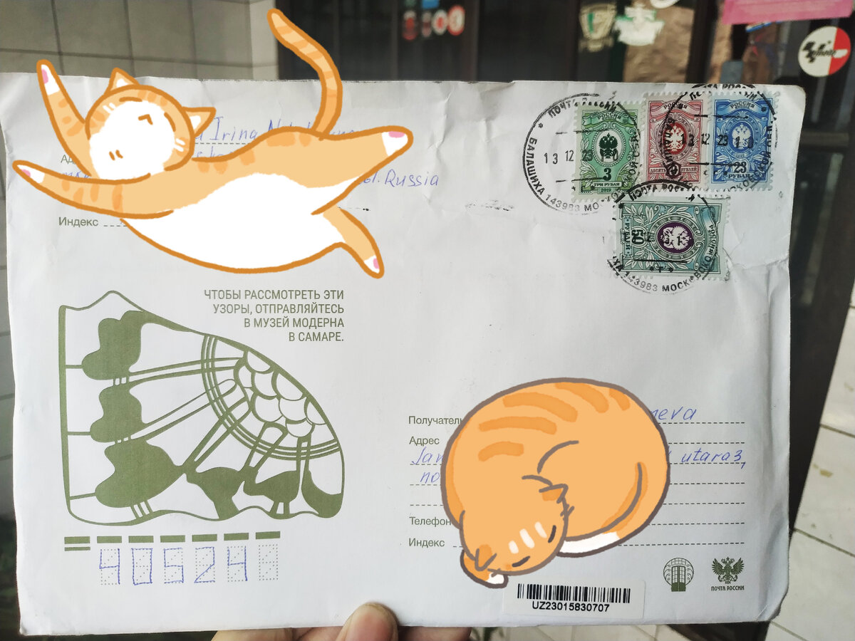 Пошла я 25-го января в универмаг "Буана" - а там уже к Имлеку - к китайскому новому году - всякое выставили на продажу, ну, и на Валентина чуть-чуть. Пофоткала это, купила, то, за чем пришла, вернулась домой, а там - конвертик ждёт: Адреса закрыла кисками - это информация конфиденциальная. А отправила мне этот конвертик Ирина, у неё есть на дзене канал @nicis В конверте - открытка, вот такая красивая новогодняя: Примечательно, что курьер почты Индонезии доставил её бесплатно - за письмо от Тинькофф с картой Мастеркард я заплатила 5000 рупий (около 25 рублей по тогдашнему курсу). А отравлена открытка была 12-го декабря прошлого года. То есть, шла она ко мне месяц и двенадцать дней - как посылка. А что то у нас принято покупать к Имлеку - покажу в другой статье.