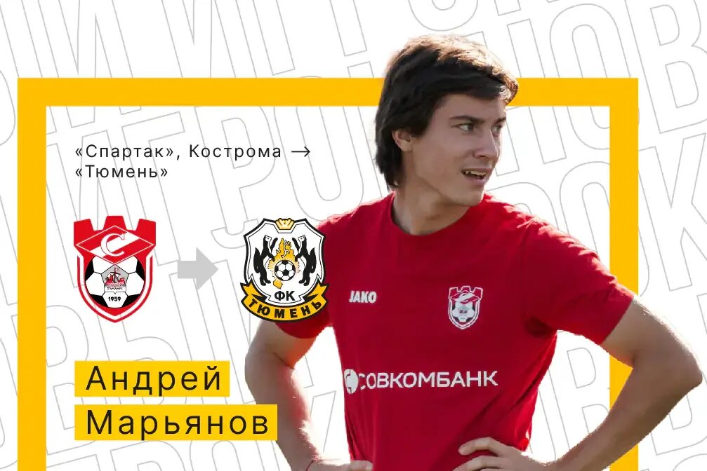 В юношеской сборной он играл против сборных Германии, Италии, Португалии. ФК «Тюмень» заключил контракт с универсалом Андреем Марьяновым. Он может сыграть на любом фланге в защите или полузащите. Футболисту 19 лет, он воспитанник «Зенита» из Санкт-Петербурга. Андрей в составе «Зенита» в юношеской лиге УЕФА выходил на поле в матчах против английского «Челси», «Ювентуса» из Италии и шведского «Мальмё». Вызывался в юношескую сборную России, с которой противостоял сверстникам из Испании, Германии, Италии, Португалии, Мексики и других стран. Во второй лиге выступал за «Зенит-2» и костромской «Спартак»: провёл 25 матчей. В «Тюмени» Марьянов будет выступать под №70. Последним под ним в сибирской команде играл Анатолий Анисимов, проведший прошлый сезон во второй лиге в казанском «Рубине-2», сообщили в пресс-службе клуба. В то же время стало известно, что расторгнут контракт с защитником Алексеем Губочкиным. Он перешел в «Тюмень» летом 2023 года. В первой части сезона всего раз вышел на поле в