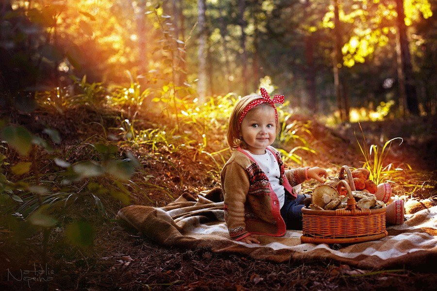 Однажды маленькая девочка с длинными светлыми волосами пошла одна в лес за грибами. И время то было грибное и грибов было видимо не видимо. Да только маленькая девочки не собирала нормальные грибы, а всё больше красивые с красными шляпками и белыми точечками по всей поверхности. Заметила это тётка грибник и говорит: