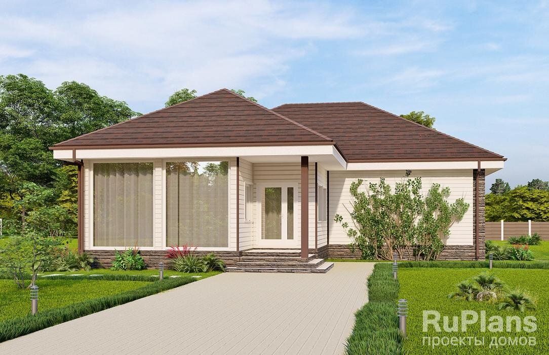 Одноэтажный жилой дом с размерами здания 15,68 х 13,34 м. Наружная отделка здания – сайдинг. Фундамент – свайно-ростверковый буронабивной. Наружные стены – газобетонные блоки. Наружные стены веранды - деревянный каркас. Внутренние стены – газобетонные блоки. Перегородки – гипсолитовые блоки. Пол этажа – сборные ж/б плиты. Перекрытие – сборные ж/б плиты. Крыша многоскатная. Кровля – битумная черепица. Окна — металлопластиковые. При разработке проектов домов из бруса, конструктив стен на стадии проектирования не прорабатывается подробно, так как это целесообразнее производить на стройплощадке уже по ходу строительства. (т.е. в состав проектной документации не входят развертки стен, сборочные схемы и спецификация элементов каркаса). В конструктиве проекта будут присутствовать монтажные планы и основные узлы. ДИЗАЙН ГОТОВЫЙ, ГОТОВЫЙ БРАТЬ?