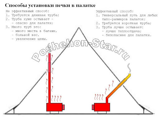 Кроме того, при выборе печи необходимо обратить внимание на материал корпуса и его длину. Чем больше печка, тем больше она нагревает помещение и топлива требует. Популярными моделями печей для палаток и палаток-шатров являются Fisher, Средиземноморская штрудель, Кипрская штрудель и печь-камин.