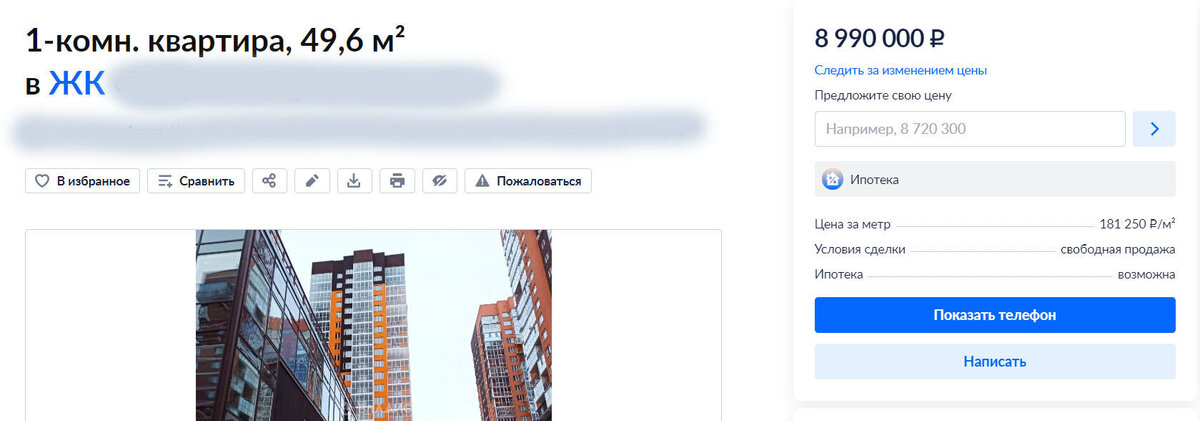 Долгое время я снимал квартиру, но подумал, что пора бы обзавестись своим жильём. Жить я всегда хотел непременно в центре и выбор пал на такой вариант - на окраине центра города, многоэтажный, почти новый дом бюджетного уровня, в тихом месте, рядом парк, есть подземный паркинг. Да, это далеко не самое качественное жильё, но на мой бюджет это наиболее подходящий вариант, из тех, что возможно было найти. Цена средняя по городу для вторичного жилья эконом класса. На скриншоте сверху - практически аналогичная квартира из моего же дома, но приобретал я её на полгода раньше и стоила она гораздо дешевле - 8.200.000 рублей.