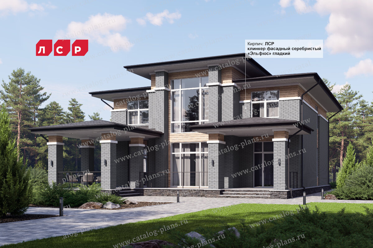 Общая площадь: 244 м² Террасы, балконы: 44,06 м² Габариты: 14.98x12.74 м Высота конька: 8.635 м Наружные стены: поризованный керамический блок 510 Фундамент: монолитная ж/б плита Перекрытия: монолитные ж/б Крыша: чердачная Кровля: мягкая черепица Наружная отделка: лицевой кирпич, дерево Цоколь: нет Архитектурный стиль: в стиле Райта Подробнее о проекте:
