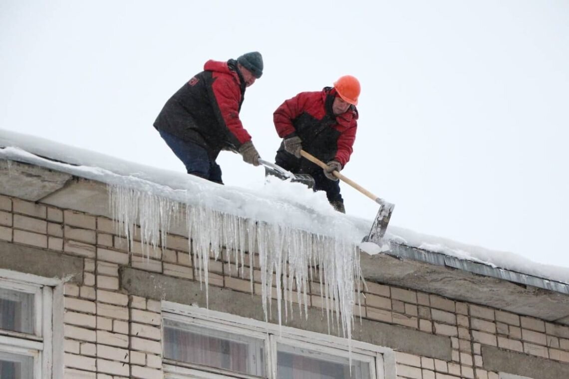 В Дзержинске очищают крыши социальных учреждений от снега и наледи