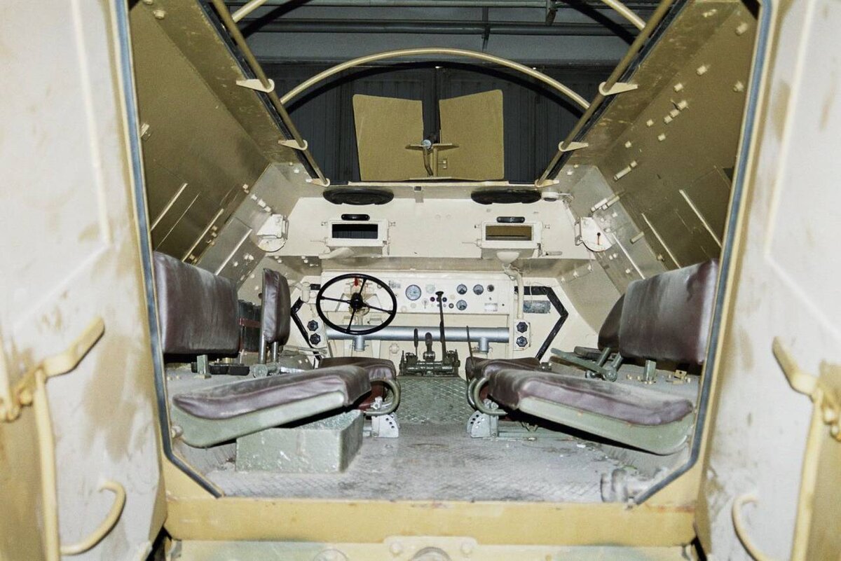 Управление бронетранспортером осуществлялось с бортов, где располагались все необходимые приборы и инструменты для работы экипажа. Во время движения бойцы могли стрелять из открытых гнезд, расположенных по бокам и на корме транспортера.
