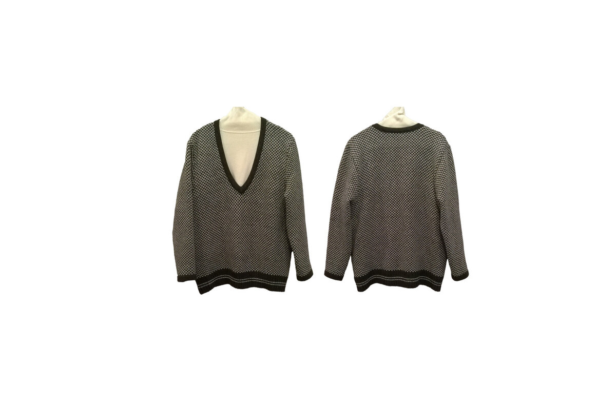 Основное полотно однофонтурный жаккард по перфокарте, бейка горловины и рукавов кулирная гладь, край пуловера резинка 2х2.