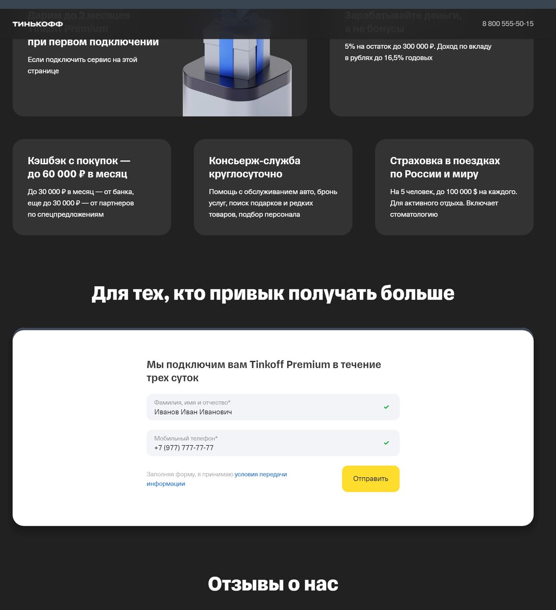 Сегодня расскажу как можно получить 2 месяца Tinkoff Premium. Бесплатно получить Tinkoff Premium на 2 месяца можно здесь: https://www.tinkoff.ru/baf/BCLOC8c00S Если подключить Tinkoff Premium через приложения, то можно получить только 1 пробный месяц. По ссылке приглашению дают 2 пробных месяца для тестирования подписки. Переходим по ссылке выше на сайт тинькофф и заполням простую анкету и через день у Вас премиум подписка на 2 месяца. Если у вас уже была данная подписка, но прошел год или более, ее можно подключить повторно Сам сервис представляет пакет привилегированных услуг и опций, который может быть полезным для клиентов банка с большими оборотами по счетам, а также для тех, кто хранит крупные суммы. В чем заключается повышенный доход, комфорт и привилегии? Рассмотрим эксклюзив подписки: Для любителей инвестировать Тинькофф Премиум предлагает: Как сделать подписку абсолютно бесплатной? Для этого надо хранить на всех своих счетах в банке Тинькофф суммарно более 3 млн рублей. Ест