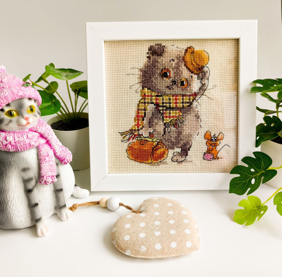 Люблю я вечером побродить по просторам популярного маркетплейса в поисках чего-то необычного и интересного. И в один день я наткнулась на вот такого милаху от Алисы. Думаю, что не удивительно, что именно этот котейка меня зацепил. Кто-то может уже видел моего ассистента, а если нет - фото ниже: Похож ведь, правда?) Я даже не удержалась и вышила эту работу в параллель с другой, хотя, это обычно не в моих правилах, я не люблю вести несколько процессов подряд. Тут небольшая, быстро закончила, поэтому можно сказать, что не считается.) Сам набор хороший. Всего хватило. И, кстати, это моя первая оформленная самостоятельно вышивка в рамку. Остальные пока руки не дойдут сделать. Рамки для 2-х есть, но они больше, чем сама вышивка и по-хорошему надо сделать небольшое паспарту, но пока не понимаю как. Как придумаю, покажу. Но не все так хорошо. Единственный минус на мой взгляд - цена. В среднем за один набор из этой серии надо раскошелиться на 350-450 рублей. Если сравнивать с другими наборами