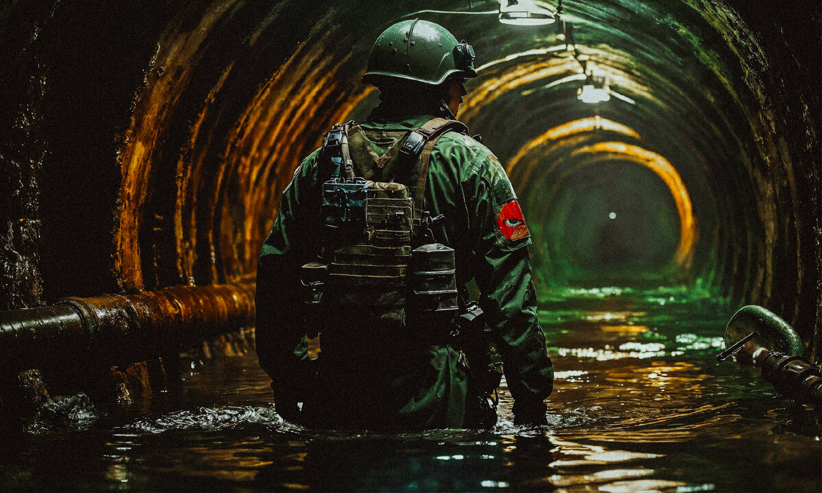 Найдя заброшенную, затопленную подземную трубу коммуникаций, было принято решение в условиях конспирации расчистить её от завалов и мусора.