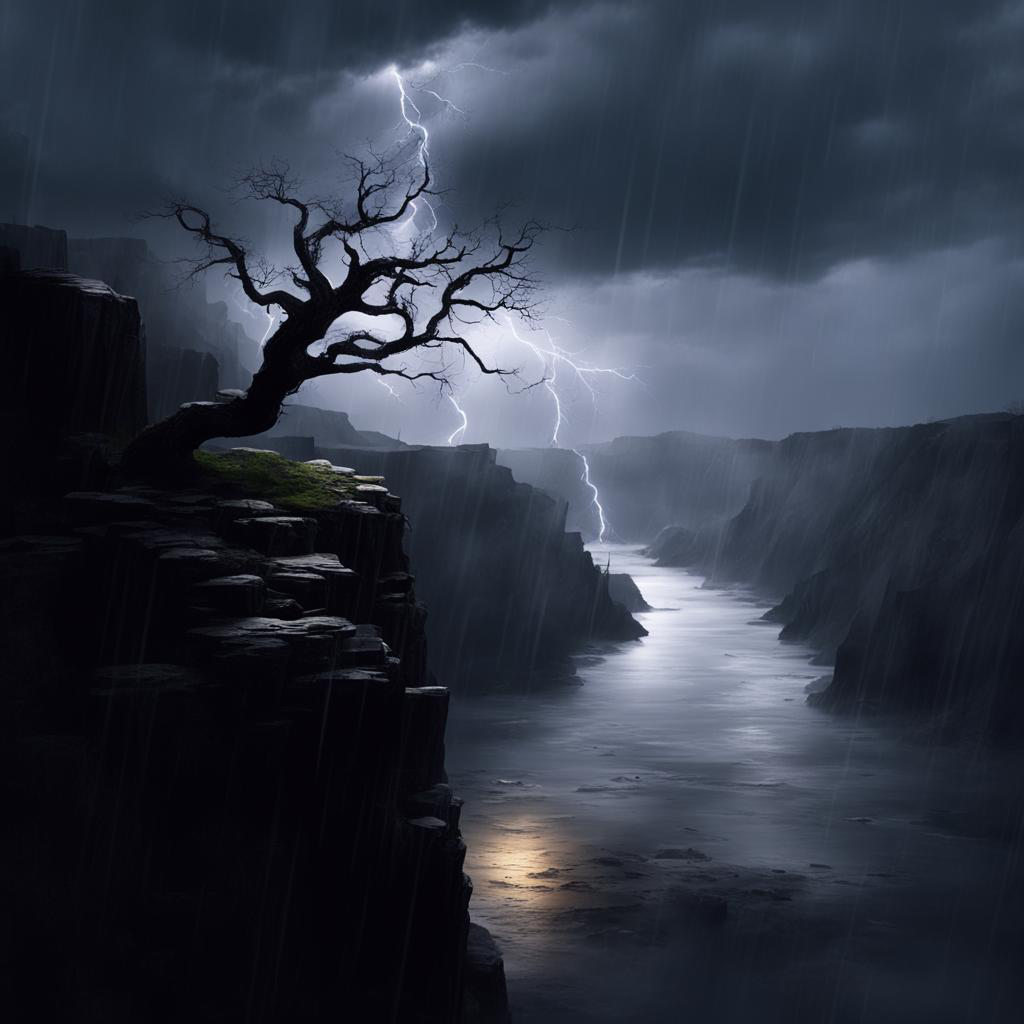 Керон нашел две крепких палки, одну из которых протянул мне, а сам стал заходить в воду. Мне ничего не оставалось, как следовать за ним. Мы передвигались аккуратно, неспеша, используя палки, чтобы проверить дно, а также для опоры. Вода доходила до пояса и была холодной, но в целом терпимо. Мы обходили большие глыбы и пороги. И сначала все шло хорошо, я даже немного расслабилась, на сколько это было возможно при таких обстоятельствах. Начался дождь, но мы уже были достаточно близко к берегу, шагов пять и можно выдохнуть. Но вдруг в огромное старое сухое дерево, которое стояло на невысокой скале, практически над нами в противоположной стороне от деревни, ударила молния, расколов его на двое. Ветки его загорелись, но дождь не давал ему разгореться. Правда одна из половин, начала падать и падала она прямо на нас. Дальше все было как в тумане, минута длилась вечность.