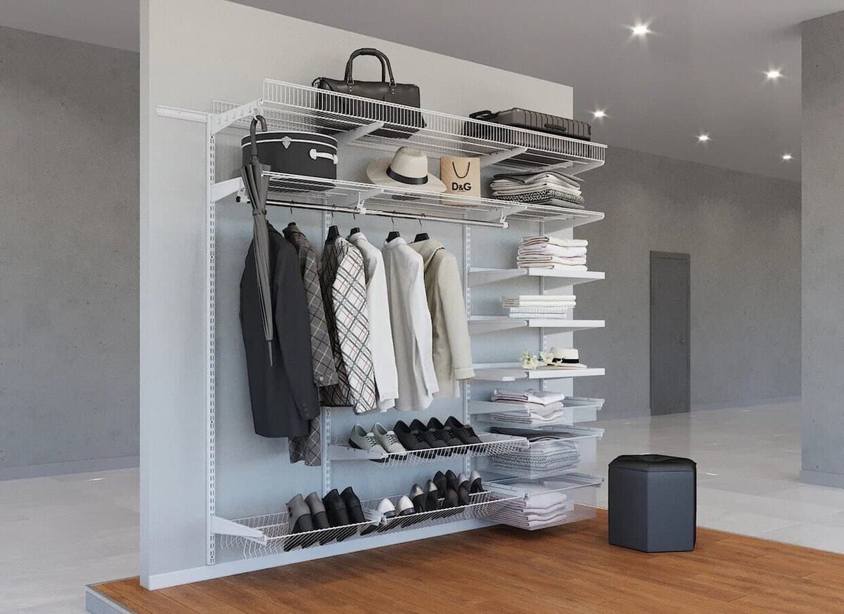 В большом разнообразии предложений для организации системы хранения в современных квартирах, особое место занимает сетчатые системы. Чем именно обусловлено такое положение дел, рассмотрим на примере главных преимуществ такой системы, в сравнении со шкафами из привычного лдсп и дерева. 1. Практичность и многофункциональность; Именно в сетчатой системе хранения можно легко изменить всю конструкцию: высоту штанг, расположение крючков и т.д. 2. Современный, минималистичный вид; Сетчатая конструкция визуально «легкая» и не придает «вес» пространству в помещении. 3. Удобство размещения; Данная система является идеальным решением для нестандартных помещений, т.к. ее легко можно заказать и собрать в разных размерных вариациях. 4. Удобство хранения; Вещи, размещенные в гардеробной с сетчатой системой видны и их легко найти при желании. Что, конечно, существенно уменьшает время на сборы. 5. Условия хранения; Помимо удобства также стоит выделить тот фактор, что пользу для вещей приносит и то, что